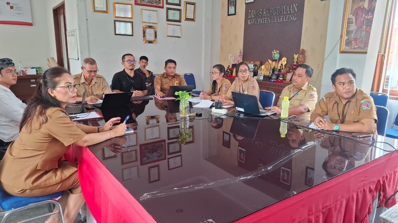 Senin, 26 Januari 2026 - Dinas Kebudayaan Kabupaten Buleleng menerima Kunjungan dari Tim Pemantau dan Evaluasi Provinsi Bali, dalam Pelaksanaan Pemantauan dan Evaluasi Pelaksanaan Pokok Pikiran Kebudayaan Daerah Kabupaten/Kota T.A 2025, bertempat di Ruang Rapat Dinas Kebudayaan.