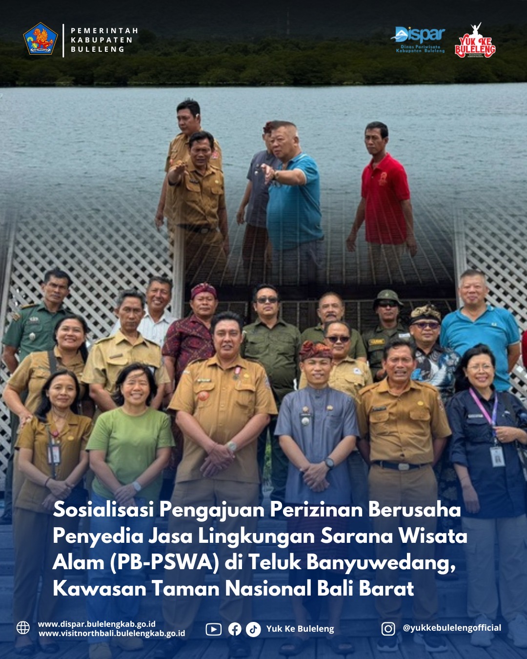Pejarakan 10 Februari 2025 – Kepala Dinas pariwisata Kabupaten Buleleng Gede Dody Sukma Oktiva Askara,S.Sos.,M.Si. Bersama Kepala bidang Destinasi pariwisata Ni Luh Made Enny Widhiyati, S.STP.,M.H. Menghadiri kegiatan sosialisasi terkait Pengajuan Perizinan Berusaha Penyedia Jasa Lingkungan Sarana Wisata Alam (PB-PSWA) di Teluk Banyuwedang, kawasan Taman Nasional Bali Barat. Bertempat di GOR Wijaya Kusuma, Desa Pejarakan. Sosialisasi ini dihadiri oleh berbagai pihak terkait, di antaranya Balai Taman Nasional Bali Barat (TNBB),Dinas Kelautan Provinsi Bali, Kelompok Nelayan Pejarakan, DPMPTSP Kabupaten Buleleng, Camat Gerokgak, Pokmaswas Pejarakan, Kelian Adat Desa Pejarakan, KUB, serta perwakilan dari hotel-hotel sekitar, rencana lokasi pembangunan, dan pihak-pihak terkait lainnya.