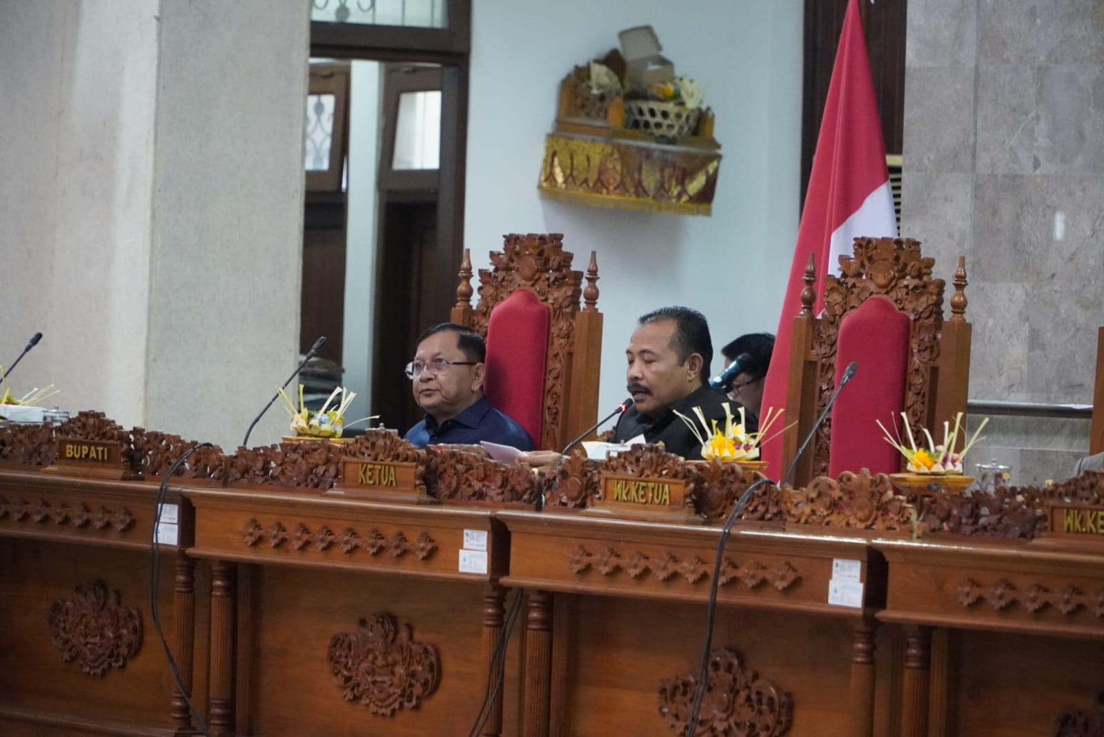 Rapat Paripurna dilanjutkan dengan Penyampaian Penjelasan Bupati atas Ranperda tentang Perubahan Kelima atas Perda No. 13 Tahun 2016 tentang Pembentukan dan Susunan Perangkat Daerah. Dimana diusulkan penggabungan dan pemisahan beberapa perangkat daerah yang dikaji sesuai dari kajian teknis dan rekomendasi dari Pemerintah Provinsi Bali.