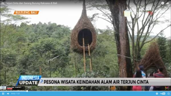 Pesona wisata alam air terjun cinta ditawarkan di desa Wanagiri, Buleleng Bali. Selain keindahan alam, keunikan sarang burung raksasa yang sengaja dibuat sangat menarik perhatian pengunjung.
