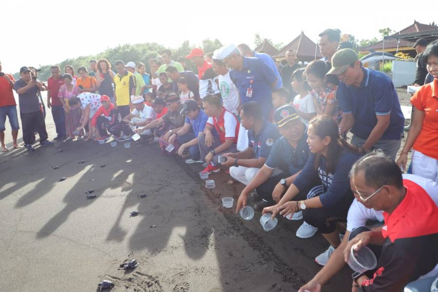 Pagi ini mengawali tahun baru 2020 Kepala Dinas Pariwisata kabupaten Buleleng Ir. Nyoman Sutrisna, MM didampingi oleh Kepala Bidang Pemasaran I Nyoman Gede Gunawan,SS bersama Kepala Bidang Destinasi Pariwisata Ketut Suteja, SE menghadiri kegiatan konsrvasi pelepasan penyu dalam rangkaian ulang tahun desa Umeanyar di daya tarik pesisir Umeanyar yang disambut baik oleh Ketua Podarwis Gede Riko dan Ketua Pokmaswas Gusti Bagus Cakra Wijaya Umeanyar selaku penyelengara kegiatan dan Owner Nalika Beach Resort and Restaurant Mr Gert dan Mrs Marsela Tenhote selaku supporting kegiatan tersebut.