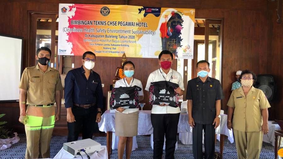 Bimbingan Teknis CHSE Pegawai Hotel bertempat di Puri Bagus Lovina Resort yang dilaksanakan oleh Seksi Pengembangan dan Peningkatan Sumber Daya Pariwisata Dinas Pariwisata Kabupaten Buleleng dan dibuka langsung oleh Kepala Dinas Pariwisata Made Sudama Diana S. Sos, MM.