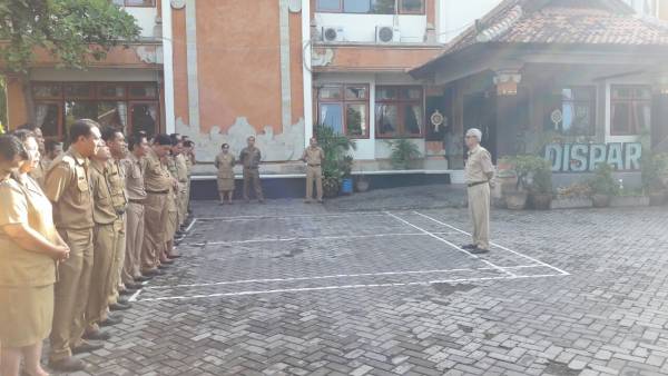 Mengawali tahun baru 2018,Dinas Pariwisata Kabupaten buleleng tanggal 2 Januari 2018.Di hari pertama proses kerja Dinas Pariwisata mengadakan sidak apel pagi yang langsung dipimpin oleh sekretaris dinas pariwisata Drs. Ketut Arjana M,pd dengan hasil tingkat kehadiran 99.05 %.Hal ini sangat diapresiasi oleh bapak Kepala Dinas Pariwisata Ir Nyoman Sutrisna MM, yang menjadi pembina dalam apel tersebut.Dalam kesempatan Rapat Evaluasi dan Rencana langkah - langkah kenerja 2018. Kadis Pariwisata juga melakukan evaluasi terhadap Kinerja tahun 2017 ,untuk optimalisasi program tahun 2018.Dalam evaluasi Yang dilakukan di ruang aula dispar,Sekretaris Dinas Pariwisata memberi evaluasi terkait Input,Proses,Output dan impact. dan juga memaparkan tiga point penting yakni Taat, Patuh,dan Wajar dalam melaksanakan proses kerja yang baik. Pada kesempatan tersebut pula disampaikan bahwa kegiatan di dinas pariwisata sudak berjalan sangat baik dengann capaian kinerja 99 %.Evaluasi Tenaga Kontrak juga sudah dilakukan oleh Penjabat Pelaksana Teknis Kegiatan (PPTK) .dan ditemukan hasil semua tenaga kontrak berkinerja baik.Harapan kadis agar kinerja kita tahun 2018 lebih baik dan optimal.
