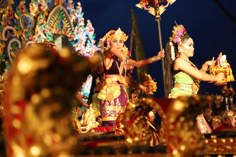 Acara didahului dengan di pentaskannya tariam Puja prastamya sebagai tari pembukaan dan dilanjutkan dengan menyanyikan lagu Indonesia Raya serta doa.