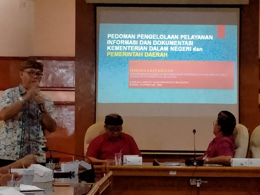 Sosialisasi ini dibuka oleh Kepala Dinas Kominfosanti Kab. Buleleng Dr. Drs. I Ketut Suweca, M.Si dengan dua Narasumber dari Komisi Informasi Provinsi Bali dimana Widiana Kepakisan memberikan materi Pedoman Pengelolaan Pelayanan Informasi dan Dokumentasi Pemerintah Daerah dan Agus Astapa memberikan materi dalam bentuk video penyelesaian sengketa informasi.