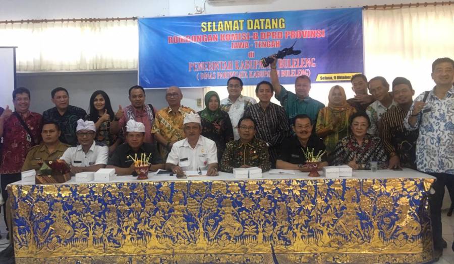 Kedatangan Komisi B DPRD Provinsi Jawa Tengah di Kantor Dinas Pariwisata Kab.Buleleng pada pukul 13.00 wita di ruang rapat Dinas Pariwisata disambut hangat oleh Ir. Nyoman Sutrisna, M.M selaku Kepala Dinas Pariwisata Kabupaten Buleleng yang didampingi oleh Kabid BAPPEDA, TAPEM Buleleng Kabag. Hukum Kabupaten Buleleng beserta jajarannya, Selasa (9/10). Kadispar Kab.Buleleng dalam penyampaianya bahwa lokasi Kabupaten Buleleng berada diutara pulau Bali dengan luas 1/3 Pulau Bali dengan luas 36.824 Ha atau 26. 95 % luas Buleleng dengan wilayah Nyegara Gunung, Multicultural Etnis, memiliki karang laut yg terbaik, seni dan budaya yg tersebar di 9 Kecamatan di Kabupaten Buleleng.