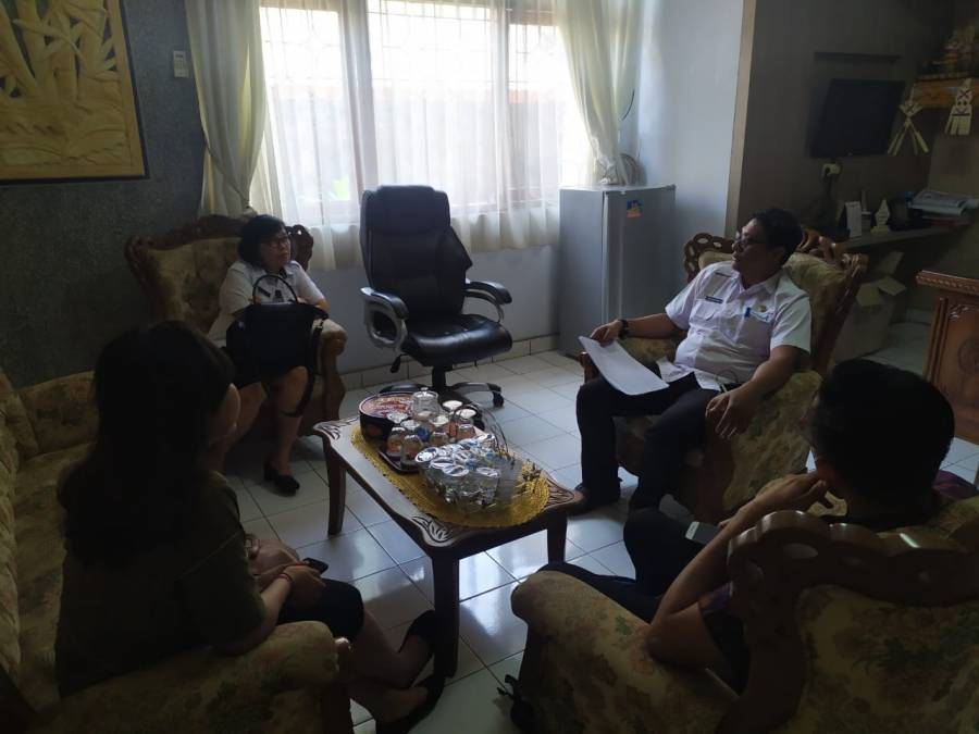 Kepala Dinas Pariwisata Kabupaten Buleleng melalui Kasubag Perencanaan I Nyoman Agus Swadarma menerima tamu dari Dinas Pariwisata Provinsi Bali, Ni wayan puriani selaku Kepala sub bagian penyusunan program, evaluasi dan pelaporan beserta staf.