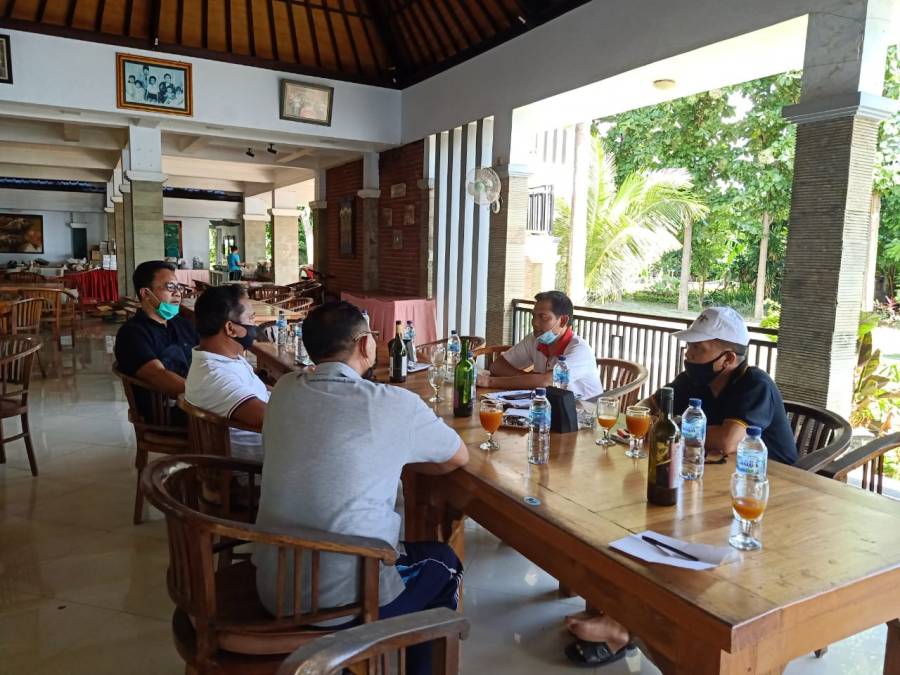 Kepala Dinas Pariwisata Kabupaten Buleleng Made Sudama Diana bersama Kepala Dinas Kebudayaan menghadiri rapat koordinasi bersama PHRI terkait karantina Pekerja Migran Indonesia di ranggon sunset, jumat 24/4.