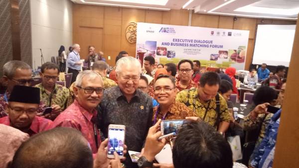 Pada Kesempatan tersebut nampak pula Hadir Drs Enggartiasto Lukita selaku menteri perdagangan Indonesia memberikan paparan dalam hal ini berkesempatan untuk menutup secara resmi kegiatan Executive Dialogue And Business matching forum 2018.