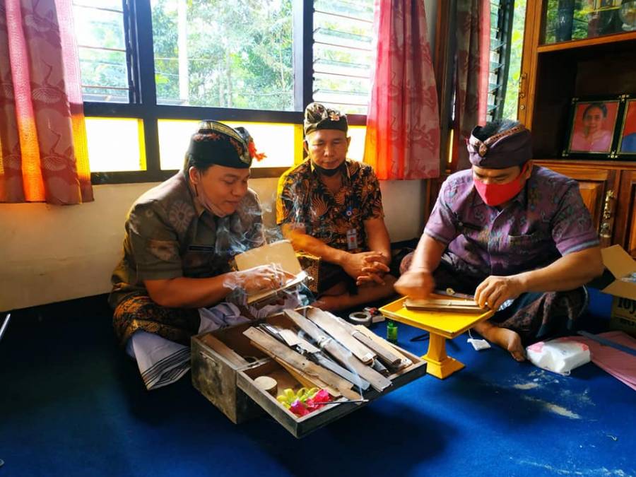 Kegiatan Inventarisasi lontar merupakan salah satu program kegiatan dari UPTD Gedong Kirtya Singaraja. Inventarisasi lontar dilakukan di 5 Kecamatan (9 Desa) di Kabupaten Buleleng pada tahun 2020. Kegiatan Inventarisasi lontar di Desa Munduk Kecamatan Banjar dilakukan di rumah warga Bapak Bapak Putu Darsana, Selasa (4/8). Kegiatan diawali dengan diterimanya tim dari Gedong Kirtya Dinas Kebudayaan Kabupaten Buleleng di Kantor Perbekel Desa Munduk oleh Kasi Kesra Desa Munduk Bapak Putu Sukardana dan menurut beliau kegiatan ini sangat penting dan berarti karena saat ini masih banyak lontar-lontar yang berada di masyarakat namun belum diketahui apa isi dari lontar-lontar tersebut dan bagaimana cara merawatnya. Melalui pembacaan lontar oleh tim ini diharapkan masyarakat akan mendapat informasi tentang isi dari lontar yang dibaca dan cara-cara merawat lontar yang disimpan oleh pemilik lontar.