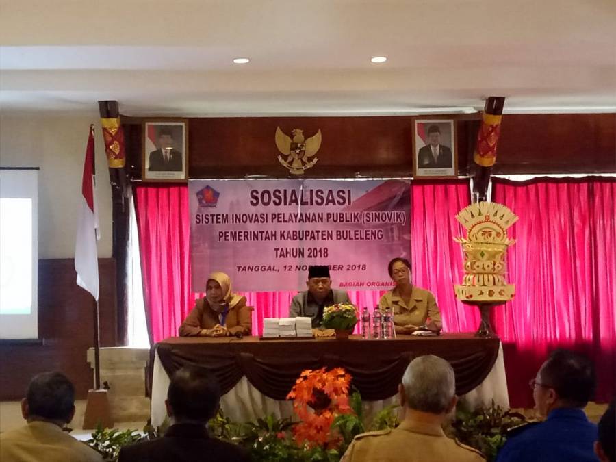 Bupati Buleleng yang pada kesempatan kali ini diwakili oleh Asisten Administrasi Pemerintahan, Made Arya Sukerta, SH membuka acara Sosialisasi Sistem Inovasi Pelayanan Publik(SINOVIK) di Aneka Lovina Villas & Spa, Jalan Raya Kalibukbuk Lovina Beach, Desa Anturan, Kec. Buleleng. Dalam sambutanya beliau menyapaikan kegiatan ini digelar dalam rangka peningkatan kualitas pelayanan publik di lingkungan pemerintah Kabupaten Buleleng.