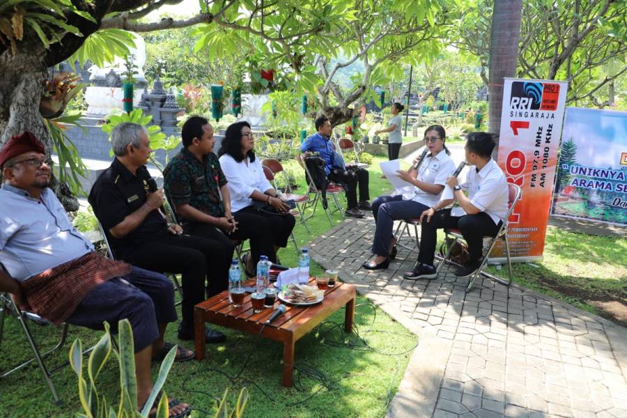 Banjar, (21/1) Kepala Dinas Pariwisata Kab. Buleleng Ir. Nyoman Sutrisna, MM didampingi Kepala Seksi Pengembangan Daya Tarik Pariwisata Putu Aristya Wibawa, SH menghadiri kegiatan Dialog Luar Studio RRI Singaraja dengan Tema Uniknya Objek Wisata Religi Brahma Vihara Arama Sebagai destinasi wisata budaya di lingkungan Brahma Vihara Banjar.