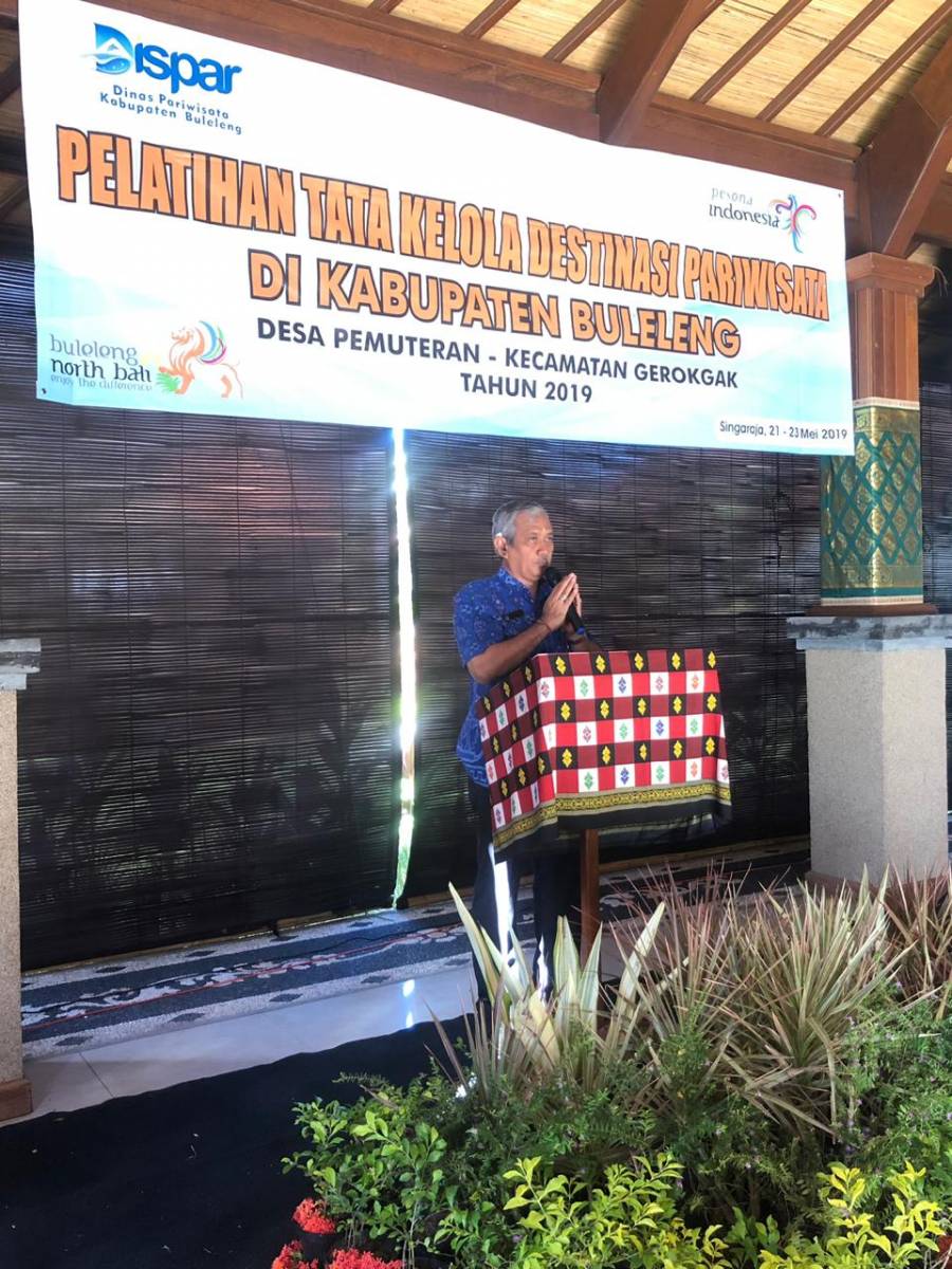 Kadispar Kab. Buleleng dalam sambutannya yang sekaligus membuka secara resmi pelatihan dalam pemaparannya tentang destinasi pariwisata Buleleng terdapat 86 daya tarik wisata yang tersebar di 9 kecamatan. Dengan adanya pelatihan ini diharapkan dapat mengintegrasikan para pokdarwis memiliki tata kelola yang sistematik.