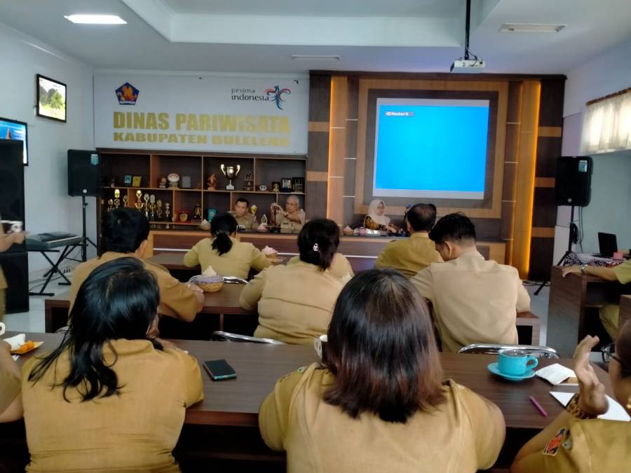 Senin, 13 Januari 2020 Seluruh Pegawai Negeri Sipil/ASN Dispar merapat keruang rapat Dinas Pariwisata Kabupaten Buleleng disebabkan karena akan ada kegiatan pengenalan Aplikasi e-Kinerja dan perekaman wajah untuk aplikasi g_absen dari TIM BKPSDM Kabupaten Buleleng.