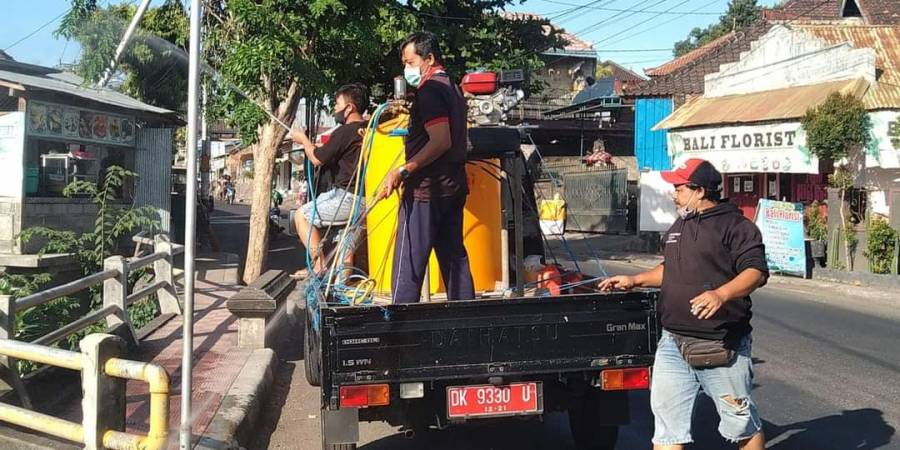 Kini tingkat penyebaran virus Corona semakin hari semakin meningkat, tentu saja hal ini sangat meresahkan banyak orang. Bahkan kini Bapak Bupati Buleleng Putu Agus Suradnyana kembali menetapkan status WFH atau Work From Home bagi para pegawai Pemda Buleleng. Tindakan ini dilakukan sebagai upaya pemutusan rantai penyebaran Covid-19. Tidak hanya aturan bekerja dari rumah, setiap pegawai pemda harus melakukan kegiatan Penyemprotan Cairan Disinfektan di beberapa tempat yang sudah ditentukan untuk masing-masing kantor. Setiap kantor mengerahkan beberapa pegawai laki-laki untuk melaksanakan kegiatan tersebut secara bergilir sesuai dengan jadwal yang telah ditentukan. Penyemprotan tidak hanya dilakukan di jalan raya tapi juga masuk ke rumah-rumah warga.
