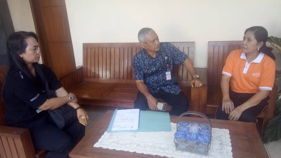 Kepala Dinas Pariwisata Kabupaten Buleleng, Ir. Nyoman Sutrisna, MM yang didampingi oleh Kepala Seksi Promosi dan kerjasama IGA Maheri Agung, SST.Par.MAP bertatap muka dengan Asisten Bidang Ekonomi, Pembangunan dan Kesejahteraan Rakyat Setda Kabupaten Buleleng, Ni Made Rousmini, S.Sos untuk koordinasi perihal persiapan Kegiatan Lovina Festival 2019 Jumat, (13/9).