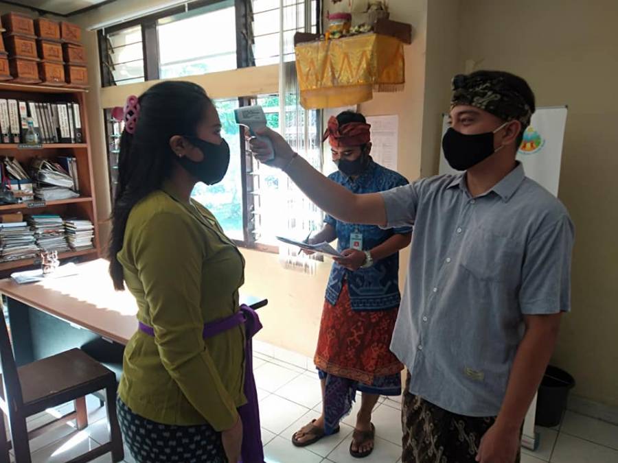 Tidak ada habisnya membahas mengenai Virus Corona yang sudah merubah kehidupan selama beberapa bulan ini. Virus Corona atau COVID-19 juga memberikan dampak cukup besar di dunia pekerjaan. Yang paling nyata, virus ini mengubah cara manusia menjalani rutinitas atau new normal. Sejak virus ini menjangkit di Indonesia, seluruh kegiatan di tempat umum ditiadakan. Seluruh aktivitas dibatasi dengan memberlakukan physical distancing seperti sekolah dan bekerja dari rumah. Pusat perbelanjaan dan hiburan juga tutup hingga operasional transportasi dibatasi. Imbasnya, perekonomian Indonesia terpukul, bahkan sejumlah bisnis terpaksa gulung tikar. Meskipun aktivitas dibatasi, nyatanya COVID-19 belum juga hilang dari Indonesia. Masyarakat tentu masih cemas untuk melakukan kegiatan secara normal di saat pandemi COVID-19 belum hilang. Begitu juga para karyawan yang masih harus tetap bekerja dan datang ke kantor. Tentunya di tengah pandemi ini aktifitas di kantor pun berubah atau bisa dikatakan mengikuti aturan new normal yang telah ditetapkan diantaranya tetap memakai masker, rajin mencuci tangan dan rutin melakukan pengecekan suhu tubuh. Seperti yang dilakukan di Lingkungan Dinas Kebudayaan Kabupaten Buleleng, dimana setiap karyawan tetap melakukan pengecekan suhu tubuh setiap pagi untuk mengetahui apakah kondisi tubuh karyawan sehat atau demam. Jika karyawan dalam keadaan demam diharapkan segera pulang dan memeriksakan diri ke dokter dan diharapkan untuk ijin bekerja sampai kondisi sehat kembali.