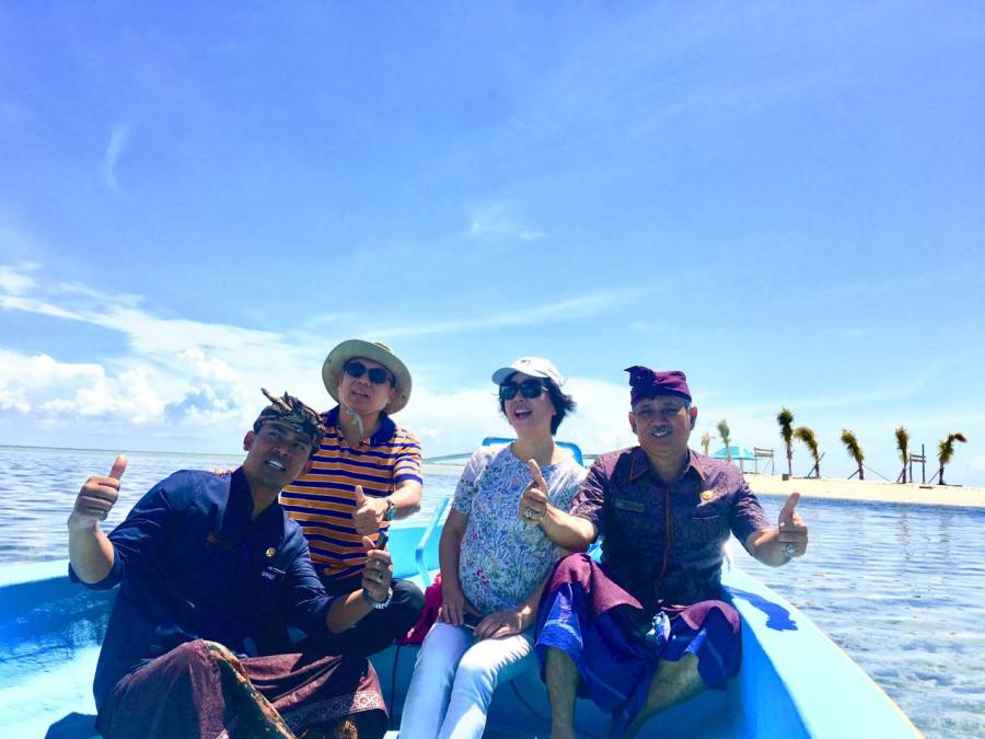 Antusias Bapak dan Ibu Kongjen melirik Gili Putih yang sangat cantik seakan memiliki daya tarik tersendiri untuk mengabadikan momen terbaik disela kunjungannya di Kabupaten Buleleng. Gili Putih Sumberkima Gerokgak, Buleleng merupakan surga lain di Pulau Dewata yang menawan , Biasa dijadikan persinggahan saat akan menyebrang ke Pulau Menjangan, kini ia menjelma jadi objek wisata yang siap membahagiakan siapa saja. Gili Putih yang semula hanya tumpukan pasir putih, diubah secara alami oleh alam menjadi sebuah daratan. Saat air sedang pasang, Traveler harus menggunakan perahu. Jika ingin merasakan sensasi berjalan di atas air, waktu terbaik mengunjungi Gili Putih adalah pagi atau sore hari. Tidak jauh dari pulau Gili Putih terdapat restaurant apung “By The Sea “ apung yang menyediakan ikan kerapu cantik & cantanh yang diambil dari penangkaran kemudian diolah dengan berbagai macam olahan sesuai selera, tersedianya kopi dan teh lumayan buat penutup sambil menikmati ayunan ombak dan hamparan perbukitan seakan menyapa dari kejauhan.