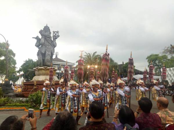Denpasar Festival ke -X dimulai pada pkul 17.00 wita yang diawali dengan pementasan parade kesenian khas denpasar, diantaranya tari baris gede yang mengisahkan tentang bagaimana masyarakat Kota Denpasar membangun dan menjalani hidup dikotanya sendiri, yang bercermin pada kisah I Gusti Ngurah Made Agung (Raja Badung ke-VIII) dengan membangkitkan perjuangan melawan penjajah dengan prinsip Nandurin Karang Awak, juga ditampilkan Tari Baris Kupu - kupu, salah satu tari baris yang unik adalah Tari Baris Cina.