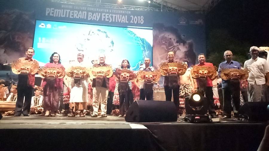 Setelah itu kegiatan di lanjutkan dengan penampilan pencak silat, dan tari Bapang Barong, kemudiaan tari pembukaan tari sekar jagat.dilanjutkan dengan laporan ketua panitia oleh Ibu Made Rousmini SS yang diwakili oleh Kadispar Buleleng Ir Nyoman Sutrisna, MM dilanjutkan ucapan selamat datang Bupati Buleleng Putu Agus Suradnyana, ST dan Sambutan Gubernur Bali dalam kesempatan ini diwakili oleh Kepala Dinas Pariwisata Provinsi Bali , A.A Gede Yuniartha Putra, S.H, M.H sekaligus membuka Pemuteran Bay Festival 2018 dengan ditandai dengan "menggletakkan atau mainkan tapel ( topeng ) Kepala Barong"