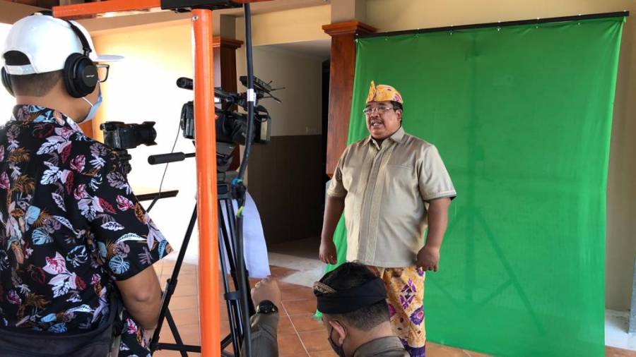 Pendampingan pengambilan gambar / recording sambutan pam Bupati Buleleng Putu Agus Suradnyana. ST pada kegiatan Pemuteran Bay Festival (PBF) 2020 bertempat di Rumah Jabatan Bupati dan di hadiri oleh Kepala Dinas Pariwisata Made Sudama Diana. S.Sos, MM., Kepala Bidang Pemasaran Pariwisata I Nyoman Gede Gunawan, SS., Kepala Seksi Promosi dan Kerjasama I Gusti Ayu Maheri Agung, SST. Par.