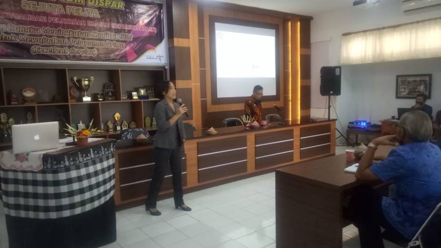 Kegiatan pelatihan sumber daya manusia dalam rangka mewujudkan pelayanan prima terhadap masyarakat oleh dinas pariwisata kabupaten buleleng,dengan menghadirkan Nana Trianasari Ph.D CHE akademisi dari Undiksha selaku Dosen Prodi Manajemen Pariwisata sebagai narasumber untuk materi Peningkatan Etika dan Prilaku.di ikuti oleh Kabid, Kasi, Kasubag,dan staf lingkup dinas pariwisata Kabupaten Buleleng.