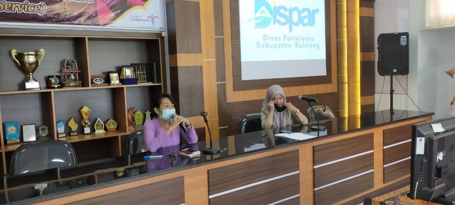 Sekretaris Dinas Pariwisata kabupaten Buleleng Nyoman Ayu Wiratini, S.Sos didampingi Kepala Sub Bagian Perencanaan Nyoman Agus Swadarma Adnyana,SST,Par membuka kegiatan Sosialisasi Aplikasi Exo Village dari PT Dirgantara kamis 27/8 diruang Rapat Kantor Dinas Pariwisata Kabupaten Buleleng. bersama Ibu Angel memaparkan pentingya Aplikasi Exo Village untuk promosi desa wisata yang ada di Indonesia dan Bulelelng Pada Khususnya.