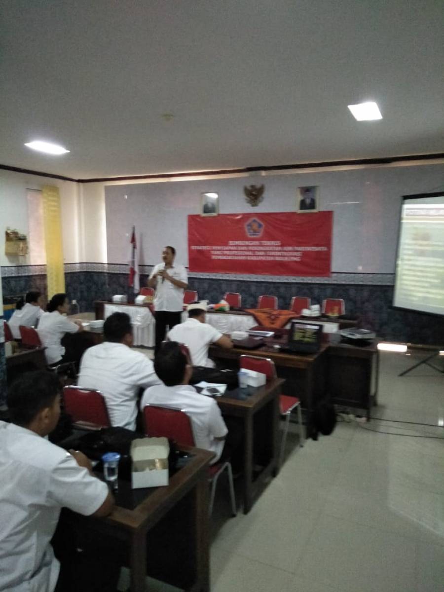 Rabu, 7 November 2018, Sekretaris Dinas Pariwisata Kab. Buleleng, Drs. Ketut Arjana, M.Pd memberikan materi tentang potensi Pariwisata Kab. Buleleng pada Bimbingan Teknis strategi penyiapan dan peningkatan ASN Pariwisata yang profesional dan terintegrasi di Ruang Rapat BKPSDM Kab. Buleleng.