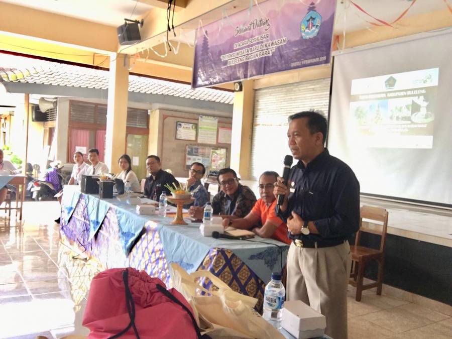 Selain itu juga, beliau ucapankan selamat datang dan terima kasih atas kedatangan para nasumber dalam sosialisasi potensi pariwisata Buleleng bagian barat. Generasi muda millenial saat ini adalah ujung tombak dari pariwisata sebagai calon tenaga kerja yang handal dan siap bersaing mengingat berlangsungnya MEA ( Masyarakat Ekonomi ASEAN ) sehingga calon tenaga kerja yang terampil dan siap bersaing secara nasional dan international papar Made Sudama Diana, S.sos, M.M selaku sekretaris Dinas Pariwisata Kab.Buleleng sebagai opening sosialisasi tersebut.