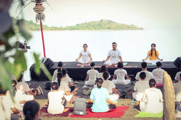 Kamis, (14/12/2017), Teluk Pemuteran dipadati oleh ratusan peserta Sunrise Yoga On The Bay. Kegiatan ini serangkaian dengan hari kedua Pemuteran Bay Festival 2017, dimana acara ini dimulai pukul 06.00 wita pagi tadi. Acara dibuka oleh instruktur yoga ; Priscillia, diawali dengan gerakan pemanasan dan keseimbangan.