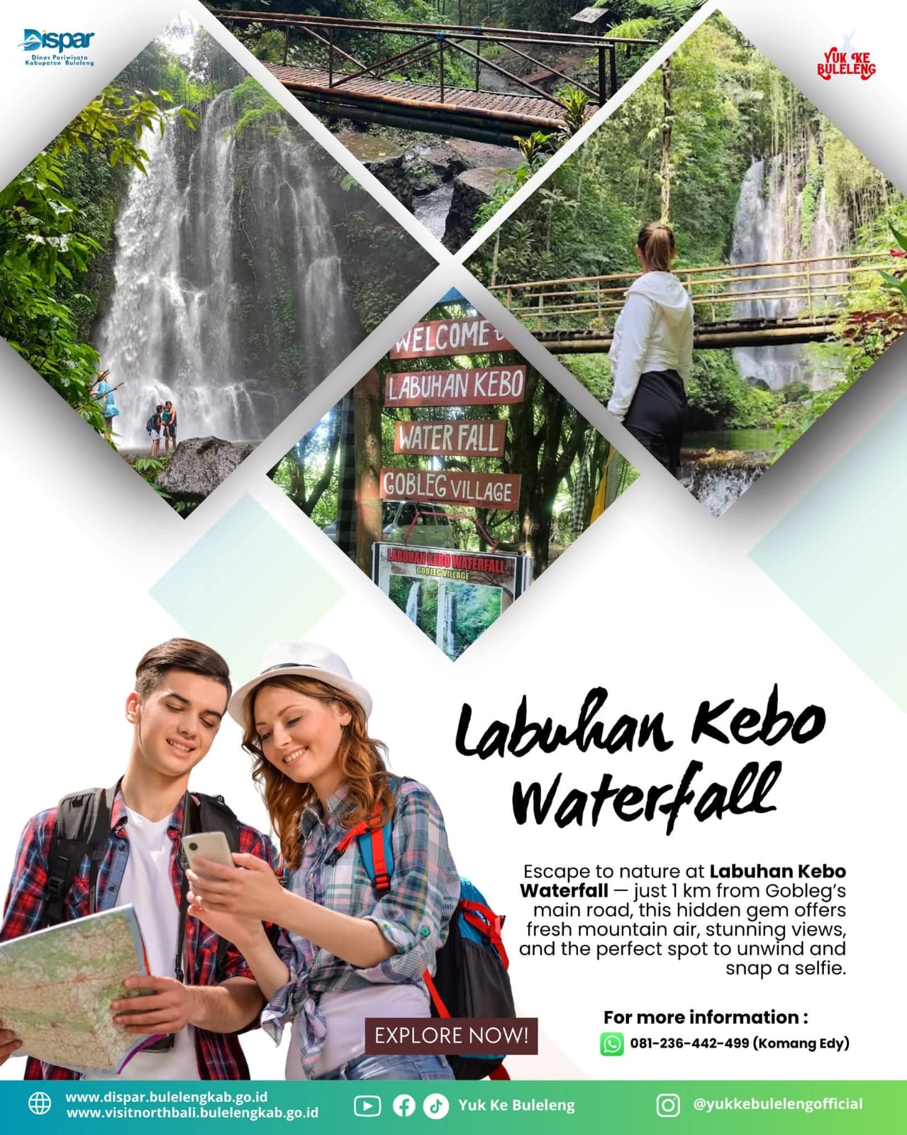Buat yang suka jalan-jalan santai sambil nikmatin alam, kamu bisa trekking melewati hutan kecil, persawahan, dan jalur alami yang asik banget buat ngilangin penat. Dan puncak dari semua pengalaman di Lemukih ini adalah pesona Air Terjun Fiji – air terjun kembar tiga yang megah dan super Instagramable! Airnya jernih, dingin, dan pemandangannya bikin kamu betah berlama-lama.