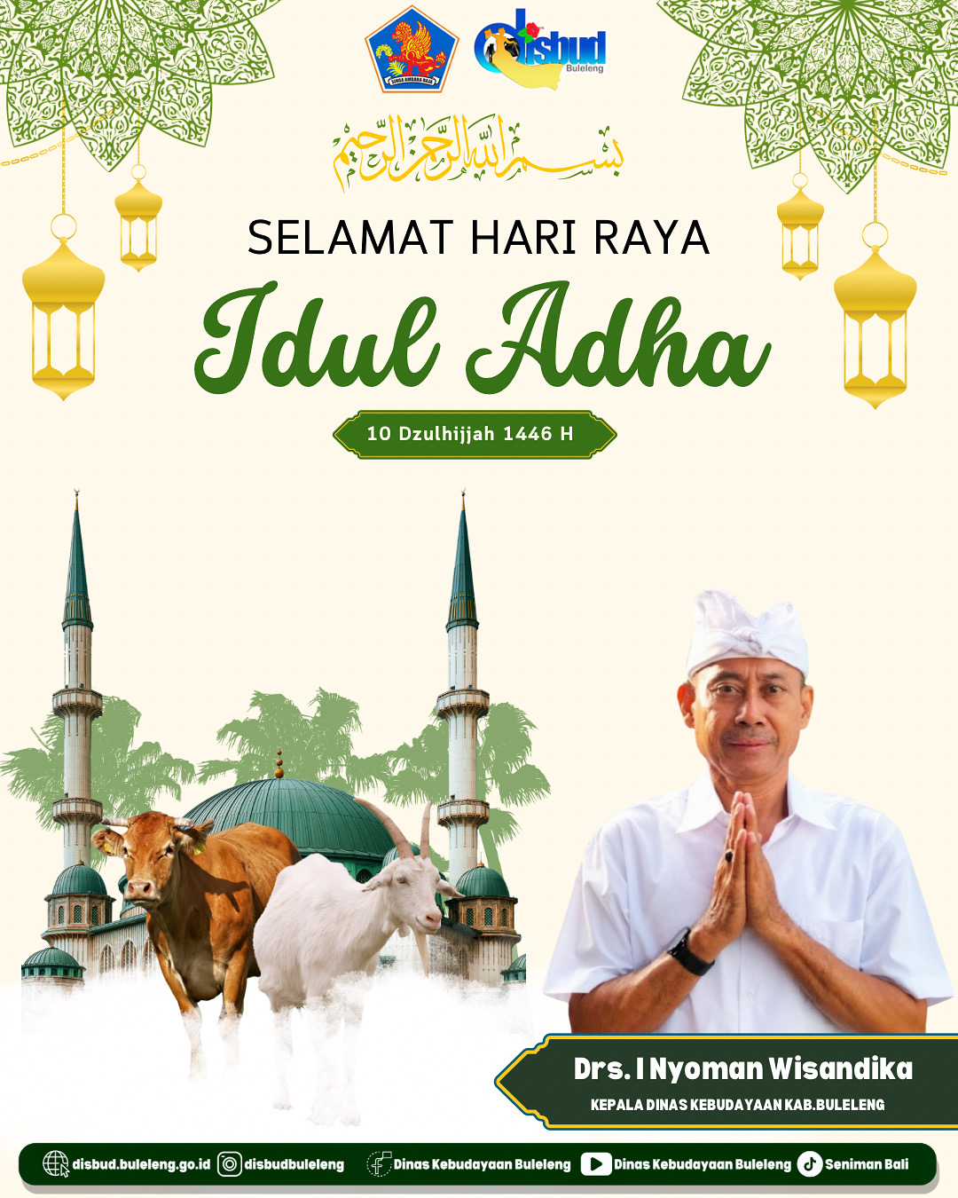 Segenap Keluarga Besar Dinas Kebudayaan Kabupaten Buleleng Mengucapkan Selamat Hari Raya Idul Adha 1446 H, bagi umat yang merayakan.