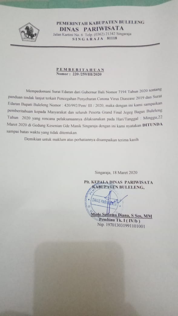 Grand Final JEGEG BAGUS BULELENG 2020 Ditunda