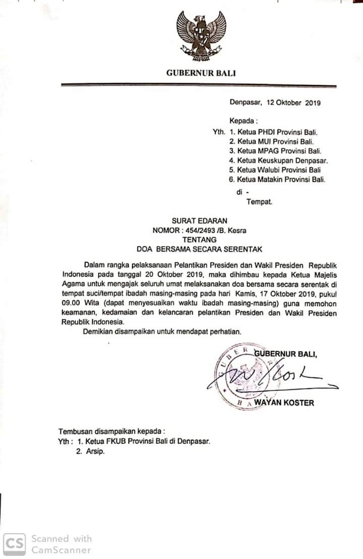 Surat Edaran Gubernur Bali, Doa Bersama Serentak