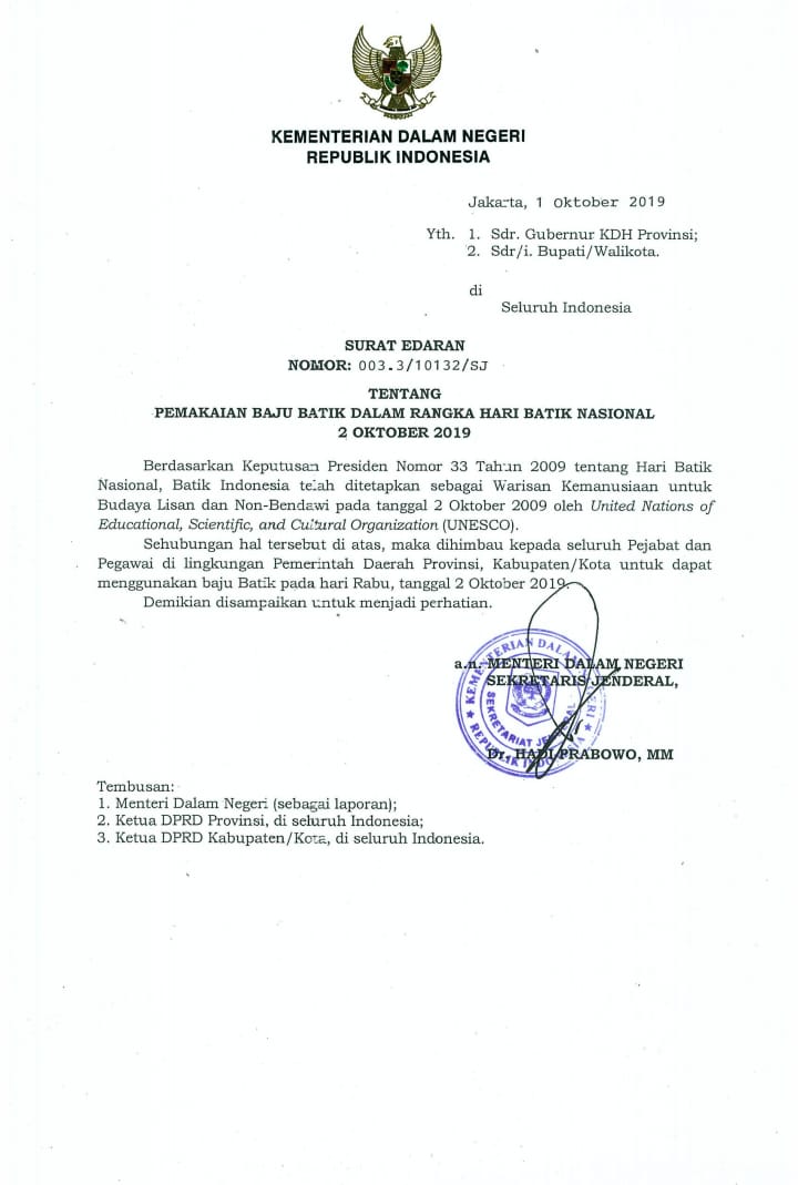 Surat Edaran Pemakaian Batik Nasional